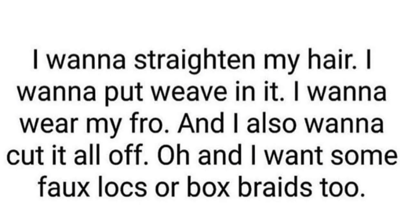 I like the choice of wearing my hair in different styles. Most of the time it’s because I get bored easily and other times I just don’t feel like doing my thick hair or permanently having my hair look the same everyday like a cartoon character. Some say “it’s just hair”, but to me, it’s not. Haircare is a multi-million-dollar industry and hair is sensitive and controversial topic. Even comedian, Chris Rock, did a controversial documentary back in 2009 called “Good Hair” about black women and their relationship with natural hair, hair straighteners, and weaves and more recently a Hulu documentary called “Hair Tales” talks about the generational and cultural differences between Black women and hair. I have always noticed how some people treat others differently based off of their hair texture, hair color, hair length and hair style. I have also been treated differently or receive more or less attention depending on how my hair looks.