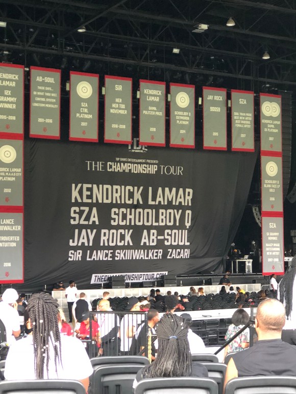 Pulitzer Prize and Grammy award winning rapper, Kendrick Lamar, and other Top Dawg Entertainment artists kicked off Memorial Day Weekend 2018 with “The Championship Tour” at the outdoor Lakewood Amphitheater in Atlanta, GA.The theme of the night was “We are the Champions” and the stage was like an athletic event with banners stating each artist of Top Dawg Entertainment music label’s accomplishments.