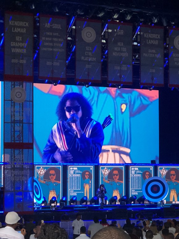 Opening artist, Sir, came out in a baseball jersey with the music labels logo on it. Ab-Soul represented archery coming on stage with a bow and arrow.