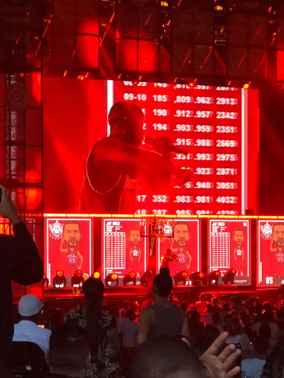 Jay Rock came on stage with a basketball uniform and even the Top Dawg Entertainment mascot came on stage dancing.