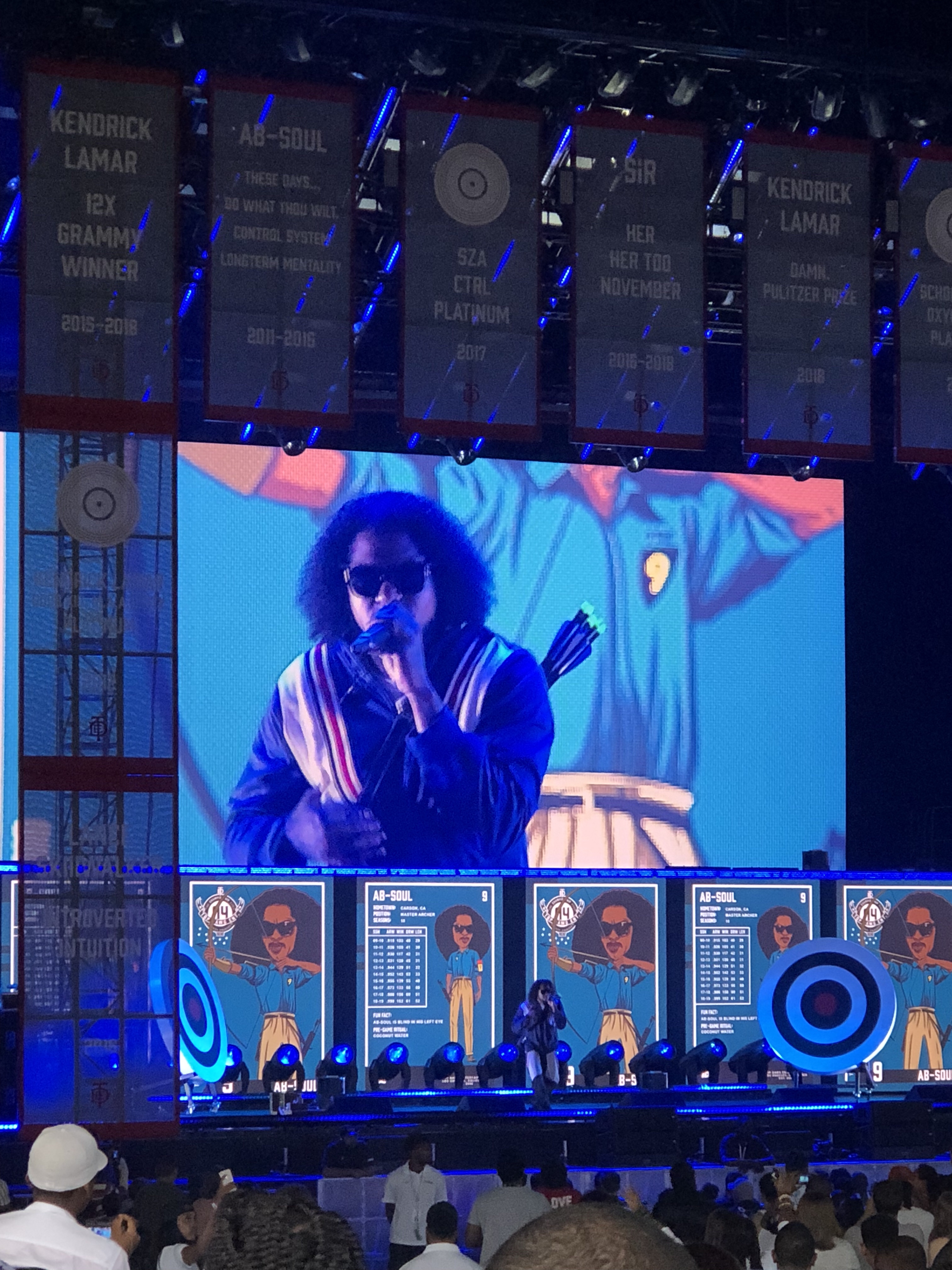 The concert started around 7:45pm and opening performances included Top Dawg Entertainment label mates Schoolboy Q, Jay Rock, Ab Soul, Zacari, and Isaiah Rashad. Singer, SZA, was originally on the lineup, but due to being put on vocal rest was not able to perform. Many audience members were looking forward to seeing SZA, yet still enjoyed the concert.