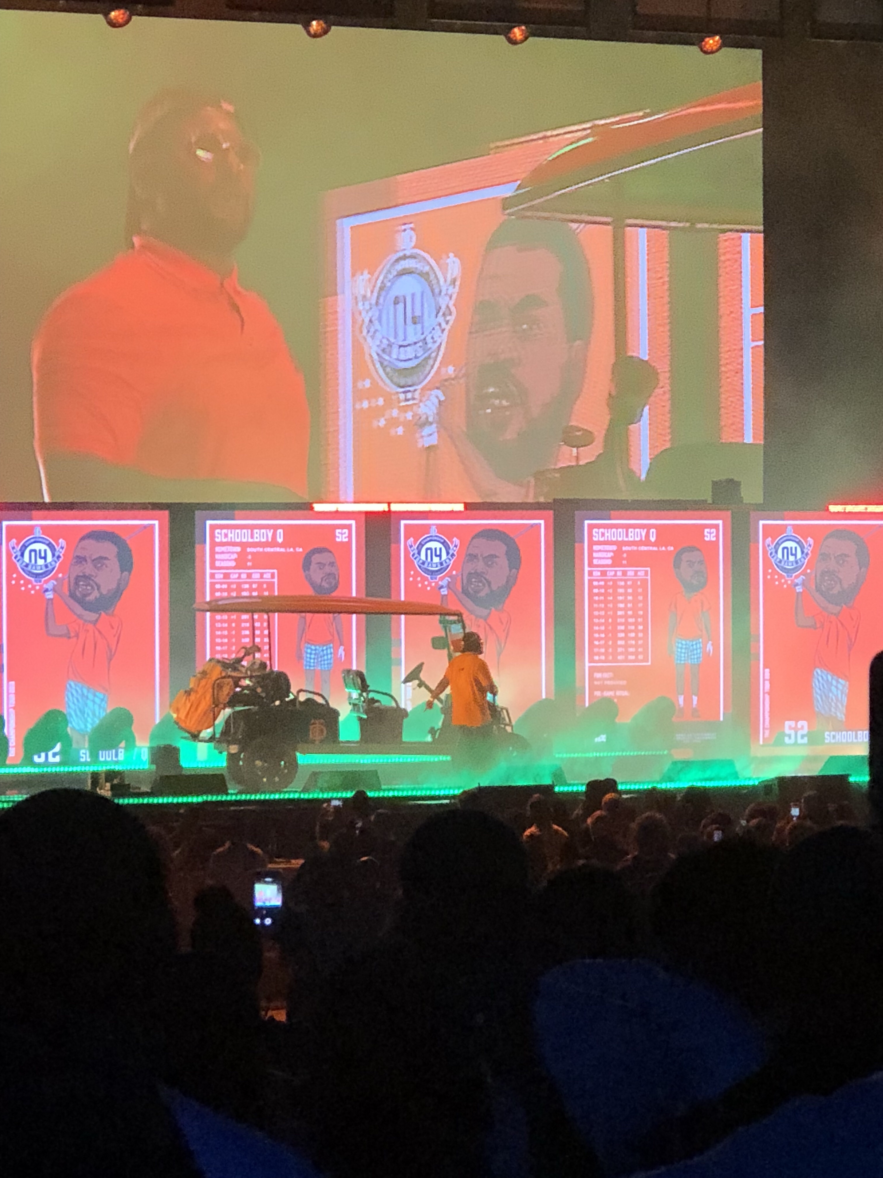 Rapper, Schoolboy Q even came on stage in a golf cart and collard golf shirt and performed. However, standout opening performances were School Boy Q’s “Studio”, “That Part”, and “Man of the Year”.