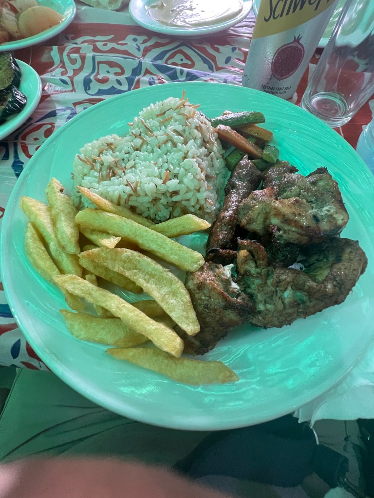 However the grilled lamb, fish, chicken, hummus, pita bread, potatoes, rice, fruit, and vegetables were so fresh and good and people drink lots of hot tea. I don’t think there are the same preservatives there are in the food as in the USA.