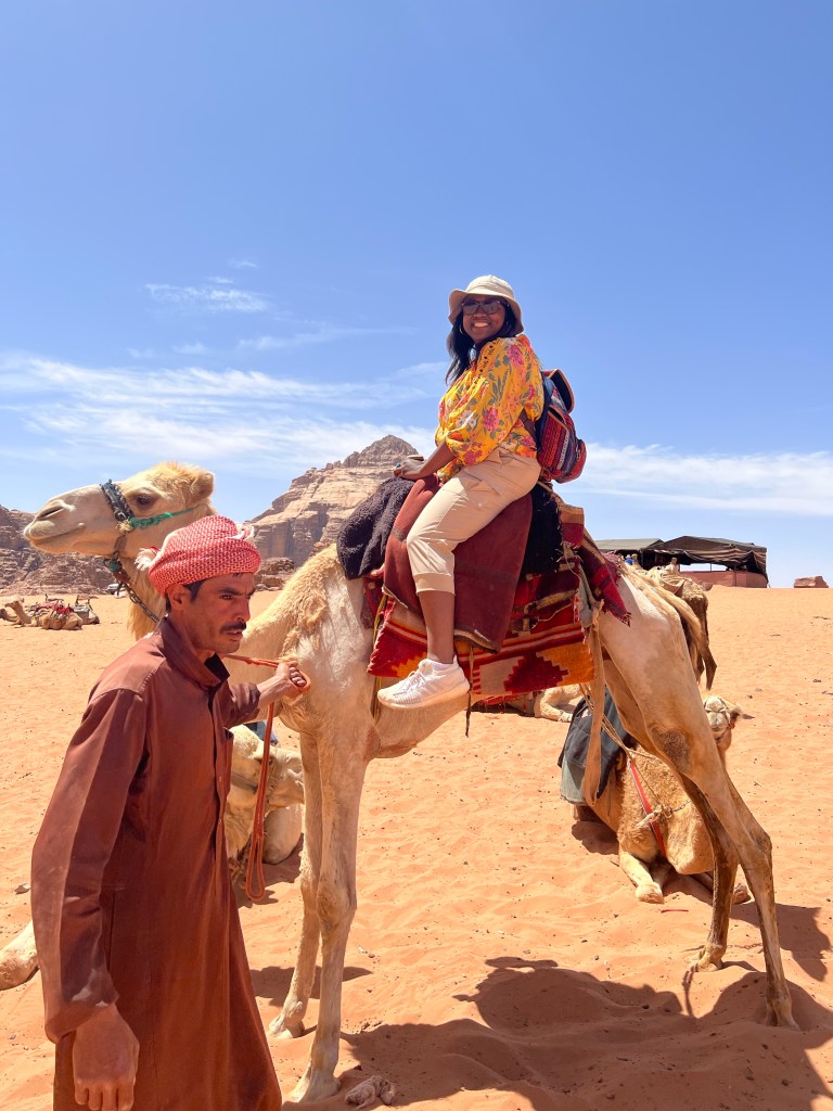 I can swim and love the water, but The Dead Sea is so salty and the pull of gravity below sea level literally makes you float on your back and the sea salt water and oil makes your skin feel like you have been at the spa! So cool! Then riding on camels in the Wadi Rum desert in Jordan was amazing. The scenery literally looks like a screen saver or movie set, but this is nature! This is real life! I had to pinch myself and after taking so many pictures put my phone up and just absorb the environment. I am in amazement with the people of the Bedouin tribe with NO GPS and being in the middle of the desert with no lights etc. they navigate the land by camels and star gazing and looking at the mountains.